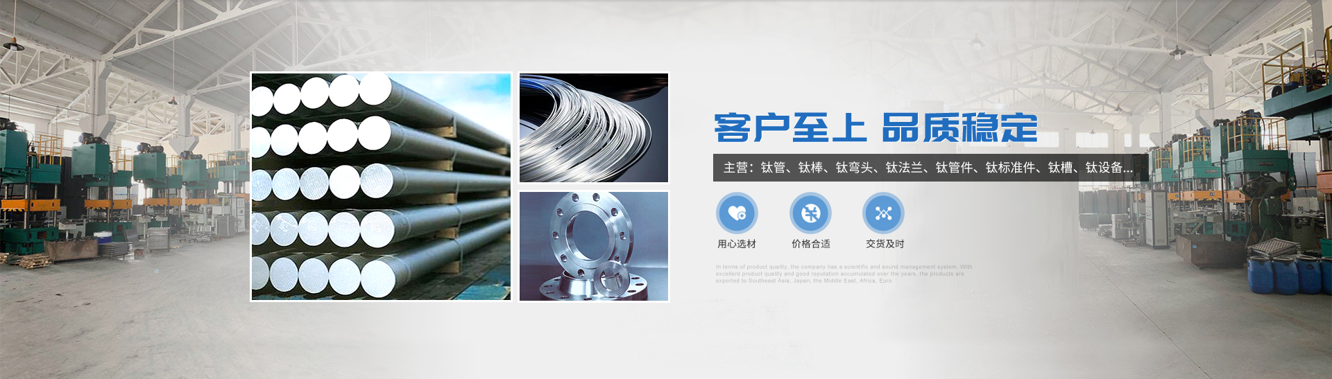 本公司的主營產(chǎn)品鈦制品有,鈦管,鈦棒,鈦彎頭,鈦法蘭,鈦管件,鈦標準件,鈦槽,鈦設備,鈦沖壓彎頭等。所生產(chǎn)各種規(guī)格的鈦制品主要運用于化工、電鍍、石油、電子、環(huán)保、海洋等領域"以質量求生存,靠服務求發(fā)展“為宗旨,客戶的滿意是我們的追求,歡迎各界用戶來函來電,傳真,洽談貿(mào)易。